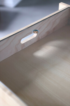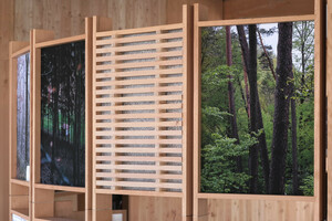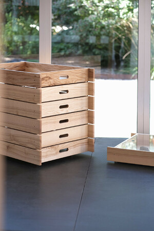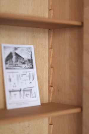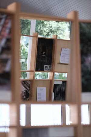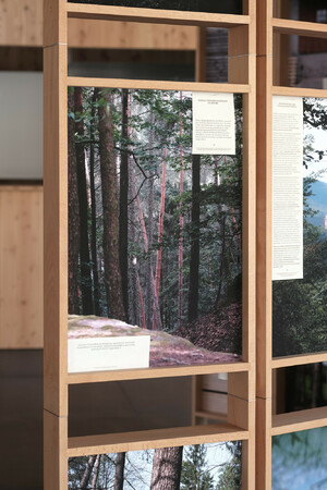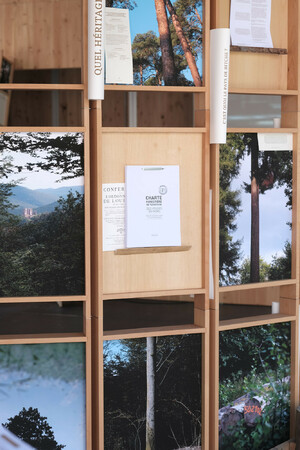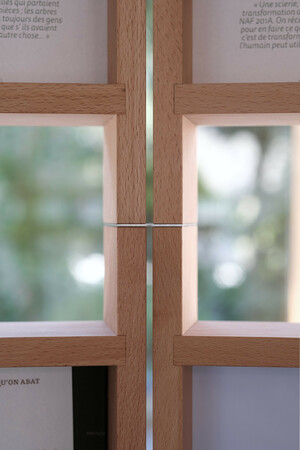 En parallèle d’un livrable d’étude conventionnel, sa restitution prend la forme d’une exposition modulable et itinérante, pensée comme un outil de médiation et d’aide à la prise de décision. Preuve par le faire des potentialités du territoire, la structure valorise les essences endémiques majeures (hêtre, chêne, pin sylvestre) et les savoir-faire des acteurs de la filière engagés dans sa réalisation. Elle se compose d'un ensemble de cadres indépendants et combinatoires, dont les attributs varient au sein d'une même construction afin d'accueillir différentes natures de contenus. Dans la collection se dessinent ainsi des cadres picturaux, une bibliothèque, un miroir, des haut-parleurs, une vitrine ou encore un meuble d'archives, invitations à déployer une production vers des usages domestiques élémentaires.