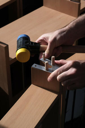 Production : Hêtre fourni par la Scierie-Caisserie de Steinbourg. Pin Sylvestre, Frêne et Erable par les établissements Schneider à Drulingen. Fabrication assurée par l’Atelier Kutsch (Meisenthal), ECM Colling (Bitche) et l’Atelier Nicolas Verschaeve (Meisenthal).