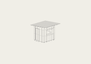 Un pavillon de liège accueille désormais les visiteurs du Site Verrier de Meisenthal. D’abord mis en service en tant que billetterie pour le musée, il est au cours de l’année dédié à différents usages, migrant sur le site au gré des besoins saisonniers. L’emploi de panneaux de liège expansé répond à un souhait de légèreté et de mobilité, d’isolation thermique et de facilité de mise en oeuvre - ici un seul et unique matériau remplit les fonctions d’isolation, de parement extérieur et intérieur. Cette boîte étanche est comprise dans une ossature de pin Douglas, traitée à la peinture à la farine. Les proportions du volume suivent le calepinage des plaques standard, optimisant la génération de chutes de matière.