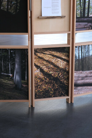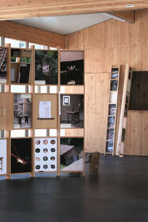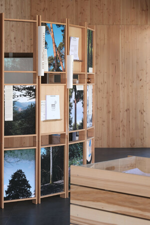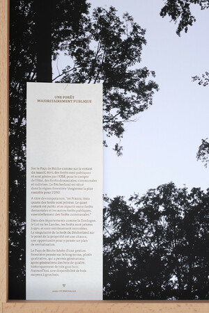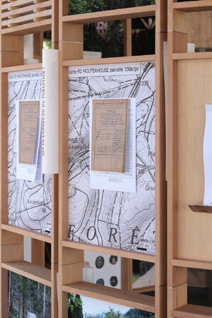 En parallèle d’un livrable d’étude conventionnel, sa restitution prend la forme d’une exposition modulable et itinérante, pensée comme un outil de médiation et d’aide à la prise de décision. Preuve par le faire des potentialités du territoire, la structure valorise les essences endémiques majeures (hêtre, chêne, pin sylvestre) et les savoir-faire des acteurs de la filière engagés dans sa réalisation. Elle se compose d'un ensemble de cadres indépendants et combinatoires, dont les attributs varient au sein d'une même construction afin d'accueillir différentes natures de contenus. Dans la collection se dessinent ainsi des cadres picturaux, une bibliothèque, un miroir, des haut-parleurs, une vitrine ou encore un meuble d'archives, invitations à déployer une production vers des usages domestiques élémentaires.