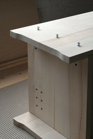 Production : Hêtre fourni par la Scierie-Caisserie de Steinbourg. Pin Sylvestre, Frêne et Erable par les établissements Schneider à Drulingen. Fabrication assurée par l’Atelier Kutsch (Meisenthal), ECM Colling (Bitche) et l’Atelier Nicolas Verschaeve (Meisenthal).